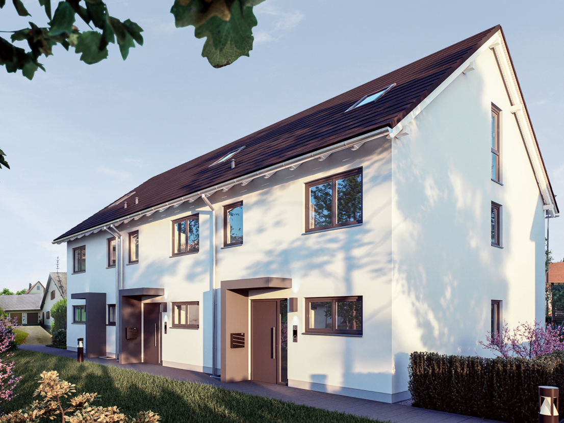 Dieses moderne Reihenmittelhaus (Keller+EG+OG+DG) entsteht im Münchner Stadtteil Berg am Laim in sehr beliebter und absolut ruhiger Lage. Das Haus (Dreispänner) wird in massiver Bauweise und voll unterkellert errichtet. Es wird schlüsselfertig übergeben, so dass keine Eigenleistungen notwendig sind. Es wird nach neuesten energetischen Standards für Sie gebaut. Die Wohnfläche beträgt ca. 121 m² inkl. der hälftig berechneten Terrasse, und des hälftig berechneten Hobbyraumes. Dazu kommen noch ca. 24 m² Nutzfläche. Das Haus wurde mit 4 Zimmern geplant, kann aber ganz nach Ihrem persönlichen Bedarf angepasst werden. Die dargestellten Grundrisse sind Beispiele seitens des Bauträgers und können noch individuell angepasst werden. Zu dem Haus wurde eine Duplexgarage geplant, diese ist im Preis bereits inbegriffen. Im Haus wird ein großer Hobbyraum gebaut, welcher sich hervorragend als Home-Office eignet (oder doch ein Fitnessraum mit Sauna!?). Das Haus verfügt zudem über 2 Bäder. Alle Fenster sind aus Kunststoff, 3-fach verglast und mit Rollläden ausgestattet. Beheizt wird das Haus mit einer modernen Luft/Wasser-Wärmepumpe. Die farbliche Gestaltung der Fassade wird vom Käufer festgelegt. Die angestrebte Bauzeit beträgt 1 Jahr ab Baubeginn. Weitere Informationen übermitteln wir gerne anhand der Bauleistungsbeschreibung.