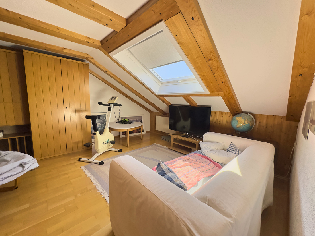 Das Haus besticht durch eine moderne und zugleich gemütliche Ausstattung, die Komfort und Qualität verbindet. Die Fenster wurden im Jahr 2016 erneuert, sodass zeitgemäßer Wärmeschutz und ruhiger Wohnkomfort gewährleistet sind, und eine nahezu neue Gastherme ergänzt einen neuwertigen Pelletofen, der behagliche Wärme und einen charmanten Blickfang bietet. Die Wohnräume sind mit schönem Parkett ausgelegt und erzeugen ein warmes, einladendes Ambiente; die Bäder präsentieren sich sorgsam gestaltet, wobei das Bad im Obergeschoss mit hellen, zeitlosen Fliesen überzeugt und das Bad im Dachgeschoss in stilvoller Holzoptik gestaltet ist. Eine Balkonsolaranlage ergänzt die technischen Einrichtungen des Hauses und trägt zur Energieeffizienz bei. Der Eingangsbereich mit kleinem Vorgarten, der südlich ausgerichtete Garten und die gemütliche Terrassenfläche mit Sichtschutz zur Nachbarschaft sorgen für Privatsphäre und laden zum Verweilen ein. Im Kellergeschoss befinden sich drei großzügige und ein kleinerer Kellerraum, die viel Stauraum bieten und das Haus in seinem guten Gesamtzustand abrunden. Ein Kellerraum wurde als Hobbyraum genutzt.