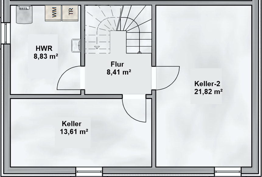 - Keller mit 2 Kellerräumen und einem Hauswirtschaftsraum