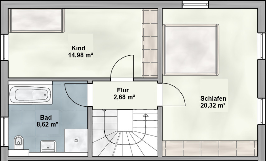 - Fußbodenheizung mit Einzelraumsteuerung im EG, OG und DG