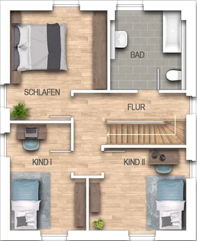 Grundrisse, Visualisierungen und Illustrationen dienen der Veranschaulichung, sind nicht maßstabsgetreu und können optionale Sonderausstattungen zeigen. Ausschlaggebend ist die individuelle Planung mit dem Generalübernehmer.