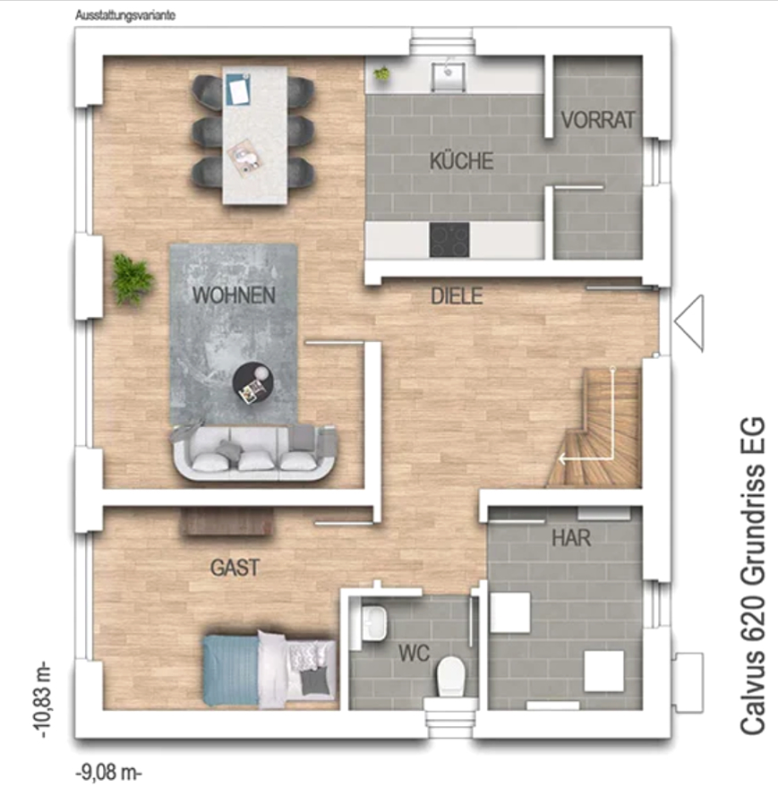 Grundrisse, Visualisierungen und Illustrationen dienen der Veranschaulichung, sind nicht maßstabsgetreu und können optionale Sonderausstattungen zeigen. Ausschlaggebend ist die individuelle Planung mit dem Generalübernehmer.