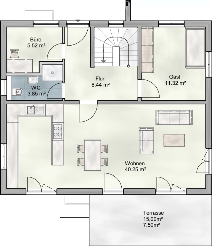 Grundrisse, Visualisierungen und Illustrationen dienen der Veranschaulichung, sind nicht maßstabsgetreu und können optionale Sonderausstattungen zeigen. Ausschlaggebend ist die individuelle Planung mit dem Bauträger.