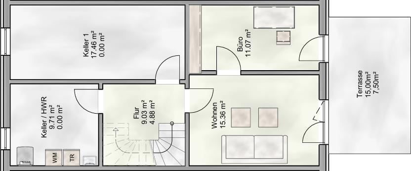 Das Reihenmittelhaus verfügt über insgesamt 3 Etagen (Erdgeschoß + Dachgeschoß + teilweise ebenerdiges Kellergeschoß mit Wohnräumen aufgrund der Hanglage). Im Kellergeschoß befinden sich ein Wohnraum (ebenerdig), ein Büro (ebenerdig), die Terrasse (ebenerdig) und zwei Kellerräume. Im Erdgeschoß befinden sich der große Wohn- Essbereich, die Küche, ein Gästezimmer, ein Flur und ein Duschbad mit WC. Im Obergeschoß sind 3 Schlafzimmer und ein geräumiges Bad. Die genaue Aufteilung ist noch genau bestimm- und variierbar. Das Haus verfügt über eine hochwertige Ausstattung und ist mit allen wichtigen Details ausgestattet. Zu diesen gehören z.B.: