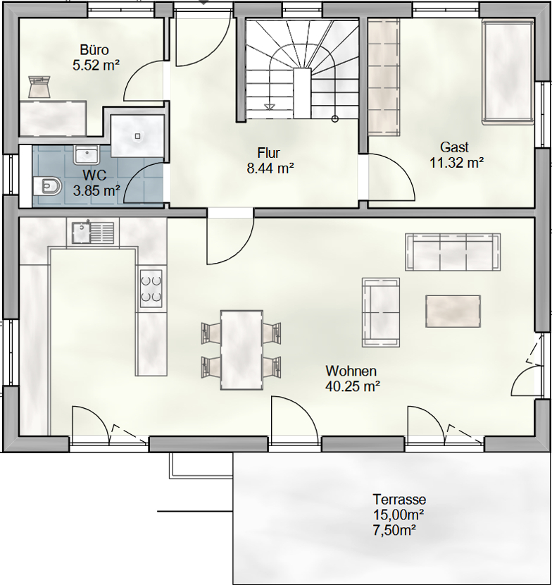 Grundrisse, Visualisierungen und Illustrationen dienen der Veranschaulichung, sind nicht maßstabsgetreu und können optionale Sonderausstattungen zeigen. Ausschlaggebend ist die individuelle Planung mit dem Bauträger.