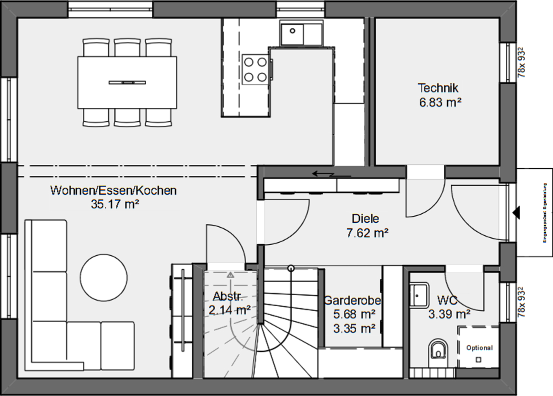 - Keller optional gegen Aufpreis (Beispielgrundriss in diesem Exposé)