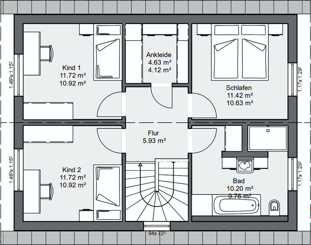 Dieses Einfamilienhaus verfügt über insgesamt 2 Etagen. Im Erdgeschoß befinden sich der große Wohn- Essbereich, die Küche, eine Diele, der Technikraum, eine Garderobe und ein WC. Im Obergeschoß sind 3 Schlafzimmer, eine Ankleide und ein großes Bad. Die genaue Aufteilung ist noch genau bestimm- und variierbar. Das Haus ist hochwertig und mit allen wichtigen Details ausgestattet. Zu diesen gehören z.B.: